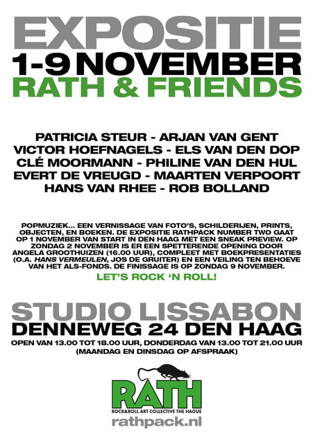Van 1 november tot en met 9 november 2025 vindt de expositie RathPack & Friends plaats. Op 1 november is de Sneak Preview. Op 2 november is de officiële opening door Angela Groothuizen. Fotografie, schilderkunst, tekeningen, objecten, boeken, een veiling en natuurlijk muziek zullen de ruimte van Galerie Studio Lissabon aan de Denneweg 24 te Den Haag opnieuw vullen.