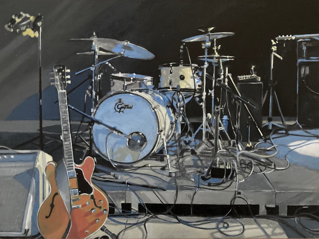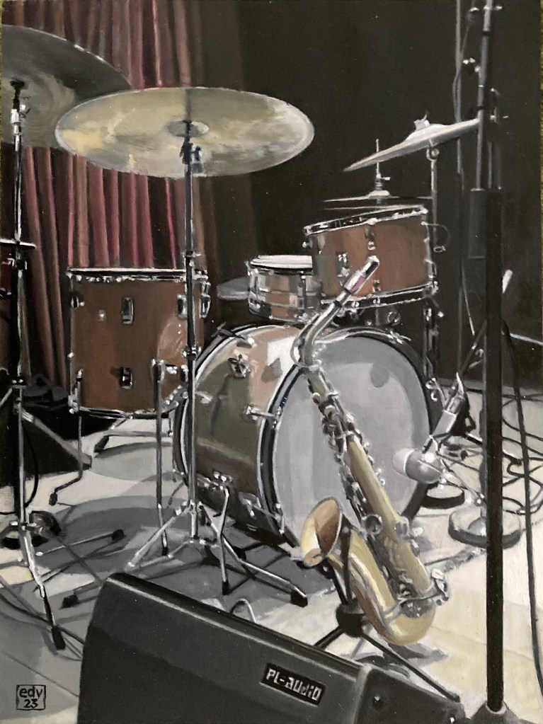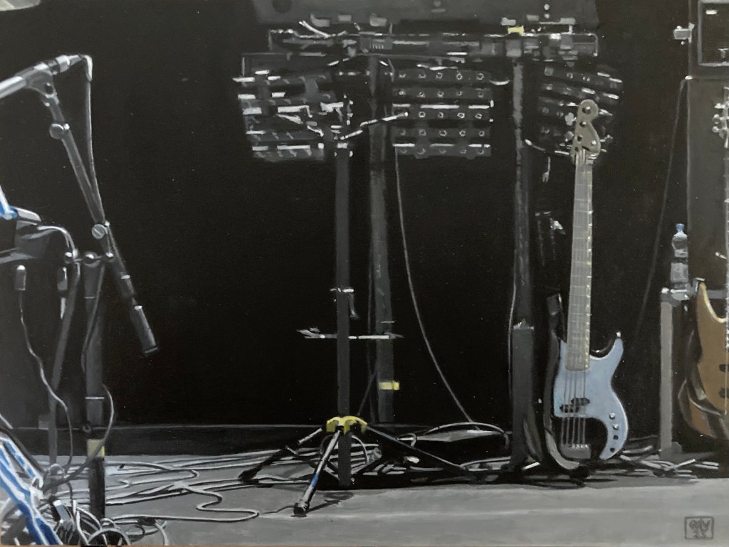 Dit groeide uit tot de serie On Stage: kleine, maar zeer gedetailleerde olieverfschilderijen, meestal op paneel, soms op doek. Het zijn beelden van concerten die hij samen met zijn vrouw — met wie hij dezelfde passie deelt — bezocht. Soms met muzikanten in beeld, maar vaak ook zonder. Oude gitaren, drumkits, backlines en alles wat zich op een podium bevindt voordat de band het podium betreedt.